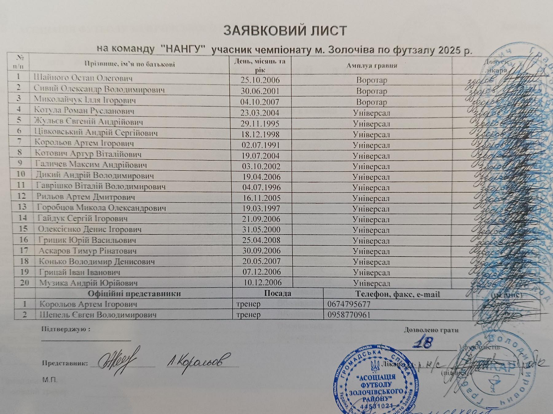 НА НГУ (Золочів) LeaguesФутзал. Екстра-ліга, Футзал. Золота ліга, Кубок ліги з футзалуСезони2025, 2026Господарім. Золочів ДатаГосподаріРезультатиГостіЧасСтадіон: 2026-02-01 12:00:3601.02.2026НА НГУ (Золочів) 5 - 0 (тех.) “Говерла” (Вороняки) 12:00:3612:00N/A2026-01-31 16:30:1531.01.2026“Ватра” (Золочівка) 5 - 0 (тех.) НА НГУ (Золочів) 16:30:1516:30N/A2026-01-25 15:00:1225.01.2026НА НГУ (Золочів) 8 - 2 “Кристал” (Ясенівці) 15:00:1215:00N/A2026-01-24 14:00:0924.01.2026НА НГУ (Золочів) 4 - 5 “Золота липа” (Ремезівці) 14:00:0914:00N/A2026-01-18 17:00:0118.01.2026“Промінь” (Гончарівка) 3 - 5 НА НГУ (Золочів) 17:00:0117:00N/A2026-01-11 16:00:4111.01.2026“Динамо” НЦ НГУ (Золочів) 6 - 4 НА НГУ (Золочів) 16:00:4116:00N/A2026-01-10 14:00:2810.01.2026НА НГУ (Золочів) 5 - 8 “Надія” (Сновичі-Красносільці) 14:00:2814:00N/A2026-01-04 15:00:0504.01.2026“Говерла-2” (Вороняки) 3 - 1 НА НГУ (Золочів) 15:00:0515:00N/A2026-01-03 15:00:5303.01.2026НА НГУ (Золочів) 7 - 6 “Колос” (В. Вільшаниця) 15:00:5315:00N/A2025-01-19 17:00:1919.01.2025НА НГУ (Золочів) 1 - 4 “Динамо” НЦ НГУ (Золочів) 17:00:1917:00N/A2025-01-19 15:40:1319.01.2025ФК “Городилів” (Городилів/Єлиховичі) 2 - 2 (п. 2:3) НА НГУ (Золочів) 15:40:1315:40N/A2025-01-19 15:00:0219.01.2025НА НГУ (Золочів) 6 - 1 “Кристал” (Ясенівці) 15:00:0215:00N/A2025-01-18 15:00:0218.01.2025НА НГУ (Золочів) 4 - 4 “Кристал” (Ясенівці) 15:00:0215:00N/A2025-01-12 13:00:3312.01.2025ФК “Городилів” (Городилів/Єлиховичі) 3 - 3 НА НГУ (Золочів) 13:00:3313:00N/A2025-01-11 16:30:3711.01.2025НА НГУ (Золочів) 2 - 4 ФК “Золочів” 16:30:3716:30N/A2025-01-04 14:00:3104.01.2025НА НГУ (Золочів) 8 - 1 ДЮСШ (Золочів) 14:00:3114:00N/A2024-12-29 16:00:2229.12.2024“Буг” (Білий Камінь) 0 - 3 НА НГУ (Золочів) 16:00:2216:00N/A2024-12-29 13:00:0529.12.2024НА НГУ (Золочів) 6 - 2 “Ватра” (Золочівка) 13:00:0513:00N/A2024-12-28 17:00:0428.12.2024НА НГУ (Золочів) 2 - 2 “Динамо” НЦ НГУ (Золочів) 17:00:0417:00N/A2024-12-22 15:00:0522.12.2024ФК “Підлипці” 1 - 7 НА НГУ (Золочів) 15:00:0515:00N/A2024-12-14 18:00:1114.12.2024“Говерла” (Вороняки) 4 - 2 НА НГУ (Золочів) 18:00:1118:00N/A2024-12-08 13:00:5208.12.2024“Промінь” (Гончарівка) 2 - 5 НА НГУ (Золочів) 13:00:5213:00N/A2023-04-09 12:00:1009.04.2023ФК “Петричі” 9 - 0 НА НГУ (Золочів) 12:00:1012:00N/A2023-04-02 15:00:1602.04.2023НА НГУ (Золочів) 1 - 4 “НадІя” (Сновичі) 15:00:1615:00N/A2023-03-26 14:00:1126.03.2023“Золота липа” (Ремезівці) 5 - 0 НА НГУ (Золочів) 14:00:1114:00N/A2023-02-04 13:00:1804.02.2023НА НГУ (Золочів) 3 - 5 “Колос” (В. Вільшаниця) 13:00:1813:00N/A2023-01-29 11:00:2729.01.2023“Сокіл” (Глиняни) 0 - 5 (т) НА НГУ (Золочів) 11:00:2711:00N/A2023-01-28 13:00:4728.01.2023НА НГУ (Золочів) 6 - 4 “Кристал” (Ясенівці) 13:00:4713:00N/A2023-01-22 15:00:0122.01.2023НАНГУ-2 (Золочів) 4 - 4 НА НГУ (Золочів) 15:00:0115:00N/A2023-01-21 10:00:4521.01.2023НА НГУ (Золочів) 4 - 7 ФК “Красносільці” 10:00:4510:00N/A2023-01-15 12:00:1115.01.2023“Фенікс” (Золочів) В/Ч Танкісти 4 - 1 НА НГУ (Золочів) 12:00:1112:00N/A2022-12-24 10:00:0524.12.2022ФК “Підлипці” 5 - 3 НА НГУ (Золочів) 10:00:0510:00N/A2022-12-11 11:00:0811.12.2022НА НГУ (Золочів) 2 - 6 “Ватра” (Золочівка) 11:00:0811:00N/A2022-12-03 13:00:1303.12.2022НА НГУ (Золочів) 1 - 10 “Буг” (Білий Камінь) 13:00:1313:00N/A