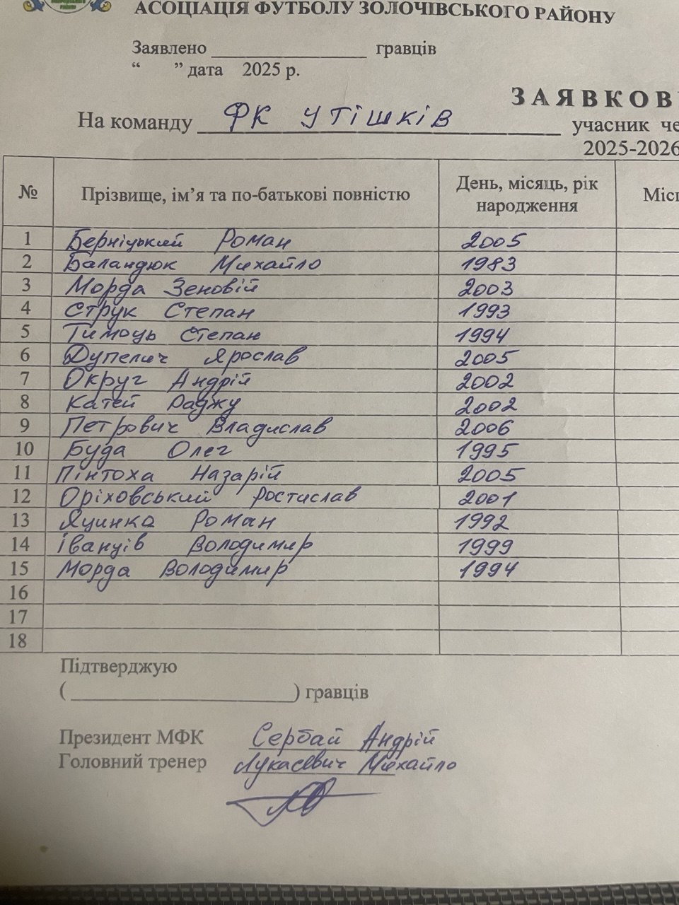 - Чемпіонат Золочівського району. Перша ліга, Чемпіонат Золочівського району. Прем'єр-ліга, Благодійний турнір з футболу на підтримку ЗСУ, Чемпіонат Золочівського району з футболу. Попередній етап, Футзал. Срібна ліга, Кубок весни Золочівського району, Кубок Золочівського району, Ліга Незламних, Малий кубок району