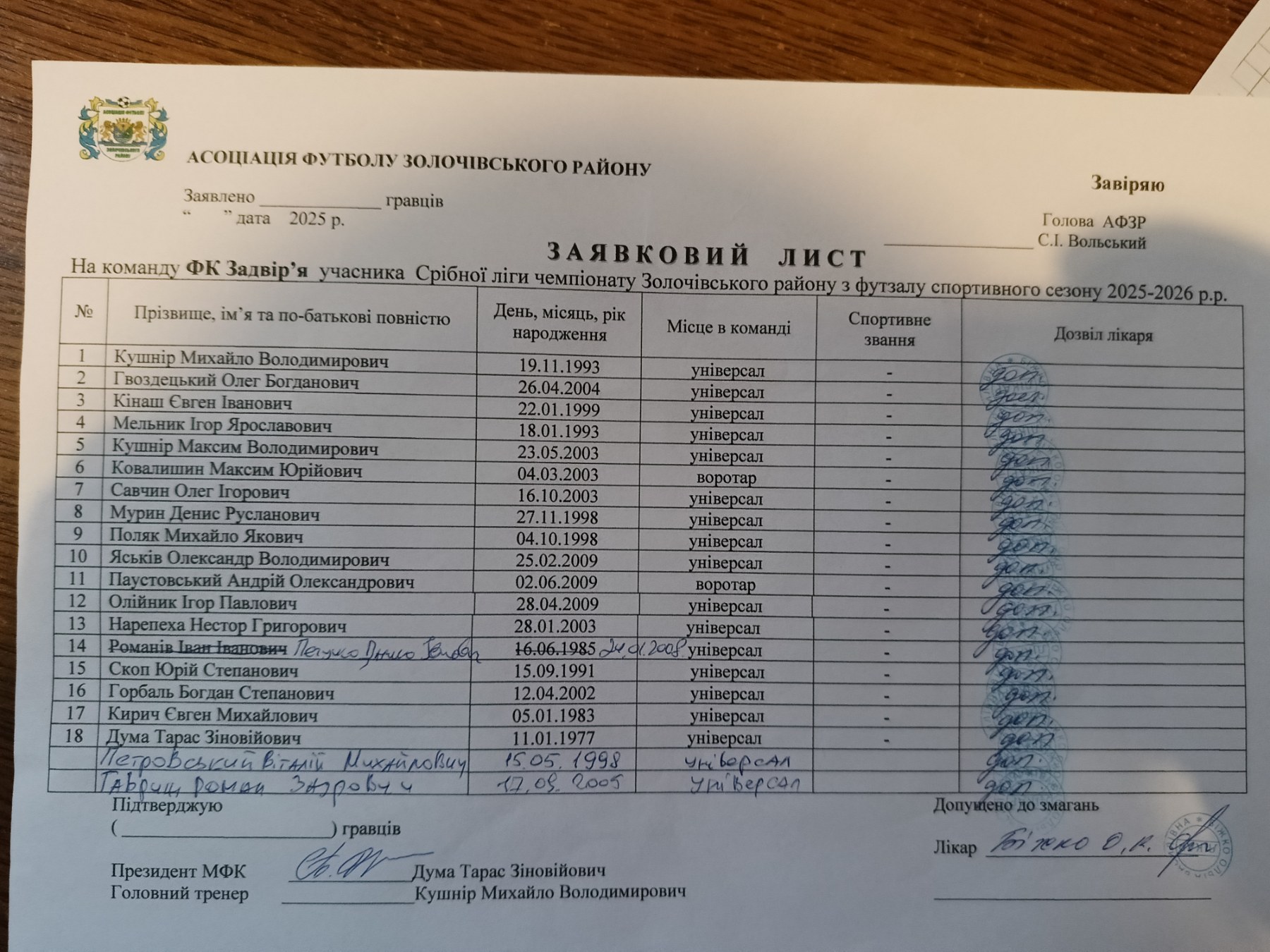 - Чемпіонат району з футзалу (Група "Б"), Футзал. Срібна ліга, Кубок Буського району з футзалу, "Кубок надії", Кубок району, Кубок весни присвячений пам'яті Д. Гладишевського. Попередній етап, Кубок весни присвячений пам'яті Д. Гладишевського. Груповий етап, Ліга Незламних, Малий кубок району, Відкритий Кубок Золочівського району з футзалу (Красненська зона), Відкритий весняний кубок Бущини