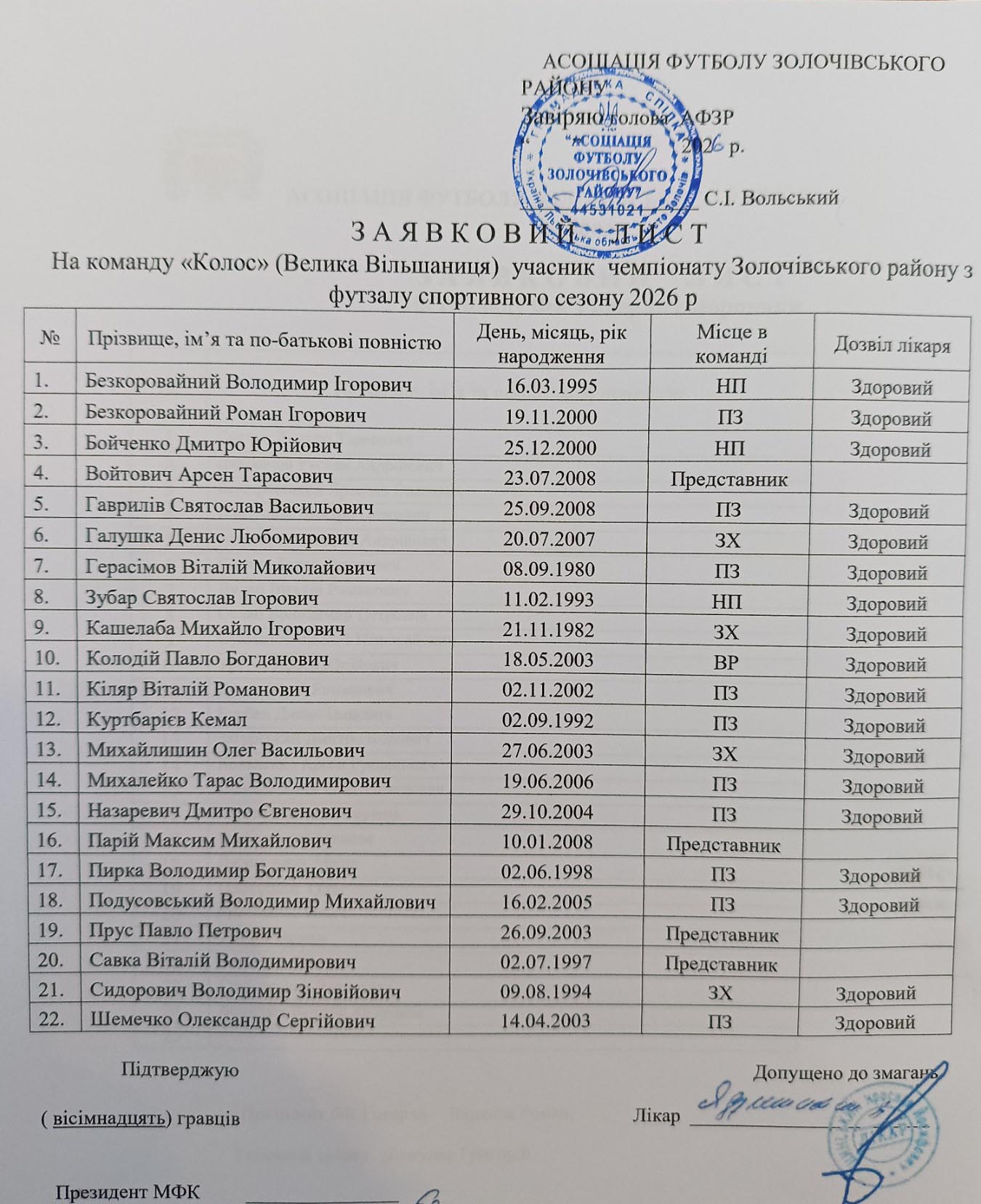- Благодійний чемпіонат Золочівського району. Друга ліга, Чемпіонат Золочівського району. Перша ліга, Благодійний чемпіонат - 2022, Благодійний турнір з футболу на підтримку ЗСУ, Чемпіонат Золочівського району з футболу. Попередній етап, Футзал. Перша ліга, Футзал. Золота ліга, "Кубок надії", Кубок осені, Кубок весни Золочівського району, Кубок Золочівського району, Кубок Золочівського району з футболу, Кубок Золочівського району з футзалу, Малий Кубок осені, Малий кубок району, Малий Кубок весни