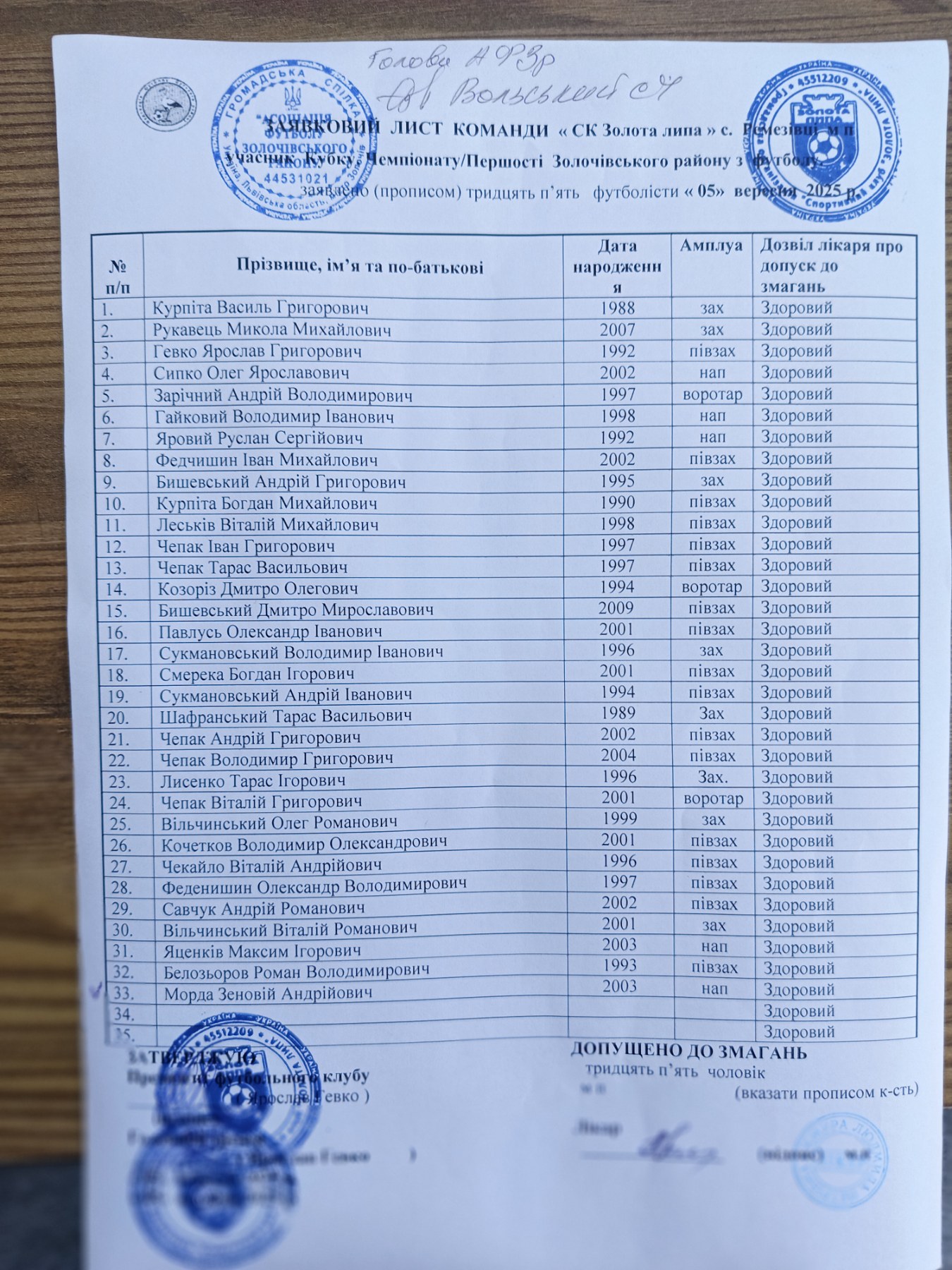 - Чемпіонат Золочівського району. Перша ліга, Чемпіонат Золочівського району. Прем'єр-ліга, Благодійний чемпіонат - 2022, Благодійний турнір з футболу на підтримку ЗСУ, Чемпіонат Золочівського району з футболу. Попередній етап, Кубок ліги, Кубок осені, Кубок східних Федерацій футболу Львівщини, Кубок весни Золочівського району, Кубок Золочівського району, Кубок Золочівського району з футболу, Ліга чемпіонів Золочівського району, Малий кубок району, Меморіал пам'яті І. Г. Вольського, Турнір пам'яті Віталія Кучера, Турнір пам'яті Володимира Малюги